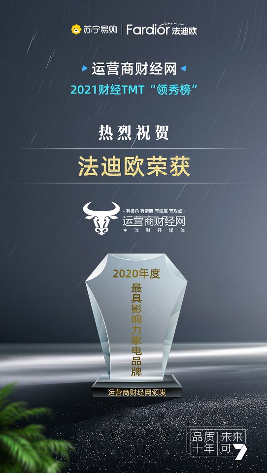 法迪欧在此次盛典中凭借实力上榜,荣获了“2020年度最具影响力家电品牌”殊荣,正是因为其在厨电领域中拥有不俗的表现。回顾2020年,各行各业都经历了巨大的挑战,厨电行业也一度陷入了负增长的泥沼中;而法迪欧却始终保持着“逆势上扬”的主旋律,在618、818、双11等大促中,取得了油烟机、燃气灶线下销量TOP1的好成绩,打了相当漂亮的一战,助力更多的用户生活品质再进阶。值得一提的是,法迪欧的品牌实力并非是在一朝一夕间铸就,而是在十余年的发展中持续升级技术、服务,不断布局渠道、营销,从而厚积薄发、引爆品牌势能,拥有了“引领厨电新未来”的超级战力——未来十年,依然可7。