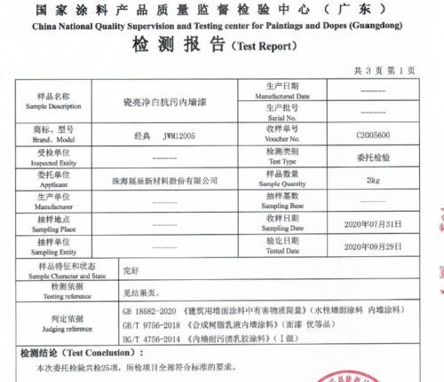 在装修材料的选择中,绿色环保性能显然是更为重要的一环。经典品牌瓷亮净白抗污内墙漆,甄选优质原材料,从源头上杜绝污染物质,生产过程中层层把控,符合GB/T 9756-2018(优等品)标准,VOC含量低——不仅符合GB/18582-2020(建筑用墙面涂料中有害物质限量),而且通过了法国VOC法规A+检测标准(A+为<1000ug/m?,瓷亮净白抗污内墙漆的A+检测为68.6ug/m?,远高于标准),产品更加环保、安全。
