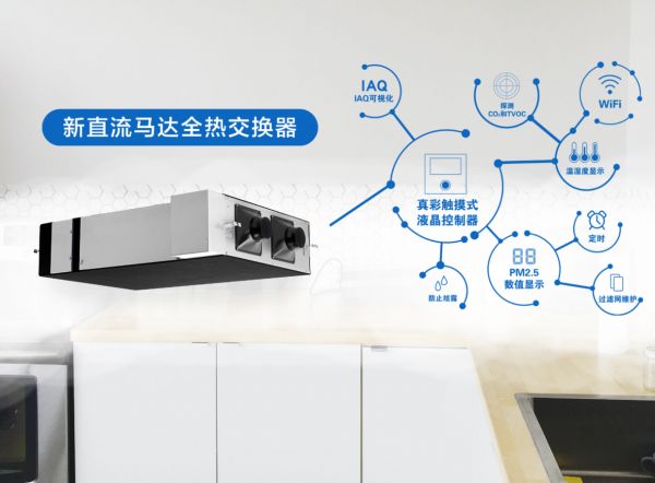 除此之外,在今年4月份的智能展上,我们将展出一款下半年上市的小型全热交换器,最大的特点就是小,能非常方便隐藏在吊顶里,解决一些层高有限的空间安装问题。