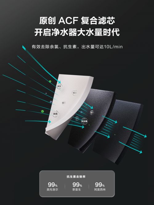 在直饮水的净化功能上,A7 Lite大水量净水器搭载了安吉尔投资1.5亿元研发费用、由200多位科研专家团队历时2年研制而成的“长效反渗透膜”,是走在净水行业前端的真正核心技术,打破了国外的反渗透膜技术垄断,被誉为净水界“中国芯”。长效反渗透膜的过滤精度高达0.0001微米,相当于人类发丝的百万分之一,能强力去除水中的细菌、病毒及重金属。同时,独特的无死角流道卷制方式也将膜的使用寿命提升至5年且净水效果不衰减。