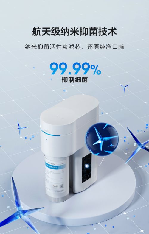 除此之外,为了安全饮水的终极保障,A7 Lite大水量净水器还具备另一项黑科技:航天级纳米晶须抑菌技术。作为航天领域抑菌材料,纳米晶须的立体四针结构可扎破细菌细胞壁,有效抑制细菌滋生,并且较传统银离子抑菌方式更安全,抑菌率高达99.99%,防御二次污染。正是有了这些黑科技的共同作用,使A7 Lite大水量净水器成为真正的“实力派”,为家庭饮用水安全带来加倍守护。