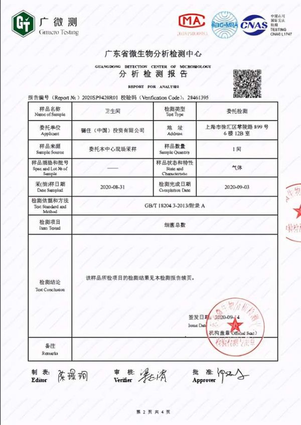 卫浴间空气内细菌总数达6CFU/皿