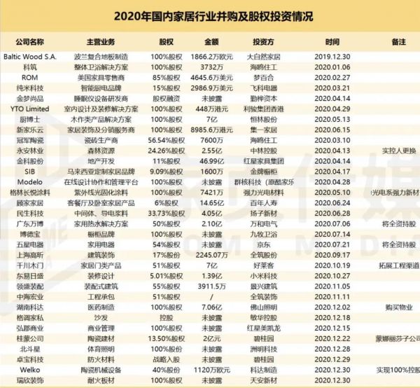 2020年家居行业并购事件高达32起,未来这一趋势将愈发明显,神仙打架的刀光剑影中,企业如何找准的定位,将自身价值最大化?