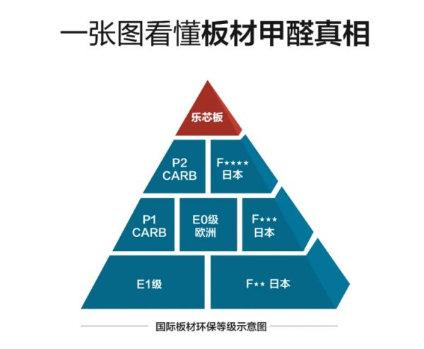 图:国际板材环保等级示意图(我乐家居乐芯板)