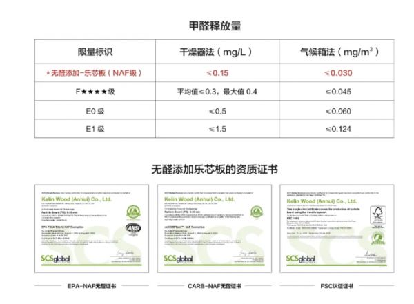 图:我乐家居乐芯板甲醛释放量和资质证书