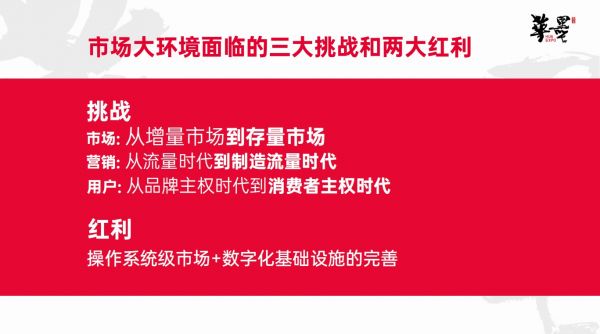 王国平先生从市场、营销、用户三个维度剖析了市场大环境面临的挑战: