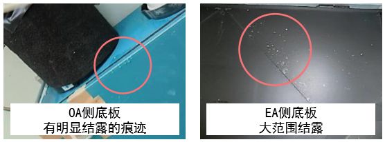 -30℃~-20℃环境情况下室内外温差大,机内外各处结露严重。