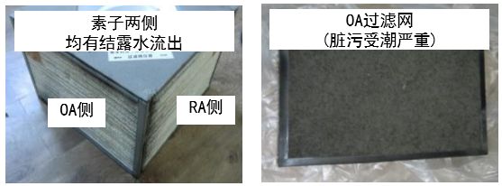 低温结露导致过滤芯/滤网堵塞,导致换热效果差,送风量大幅下降