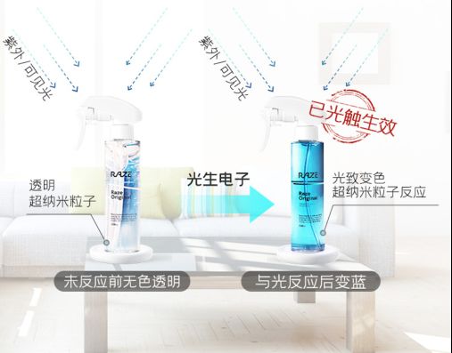 RAZE看到了这个市场,并抓住了光触媒发展的黄金期。在香港率先成立公司,迅速集合香港科技大学等国内外高精尖科研院所,凝聚物理化学众多领域科研人才。潜心 10 年,苦心专研,在传统纳米光触媒材料上获得重大突破,找到一种新型光触媒纳米材料。并通过原子级操控技术,将这种新型纳米材料粒径做到小至 2nm,从纳米级提升到超纳米级,性能也是传统纳米光触媒的 5 倍。