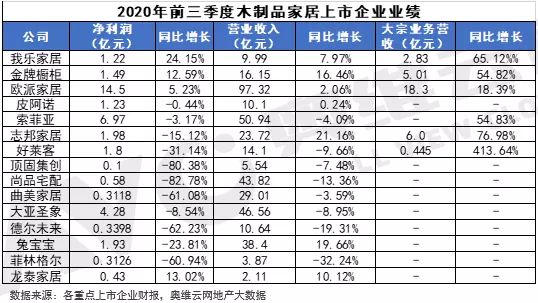 欧派家居于2020年10月29日披露三季度财报,报告显示“公司2020年前三季度营业收入97.32亿元,同比增长2.06%;前三季度净利润14.50亿元,同比增长5.23%”;“在渠道方面,欧派前三季度经销店贡献74.06亿元的营收;大宗业务贡献18.30亿元,增幅较大,达18.39%;”。