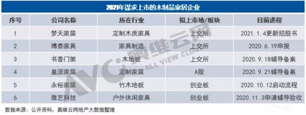 企业自己积极谋求上市IPO,利用外部资源拓展生产,加大技术研发,提升企业竞争力。2020年涌现一大批谋求上市的企业,如龙泰家居、汇森家居等都已经在2020年成功上市,预计2021年还有部分企业继续谋求上市。