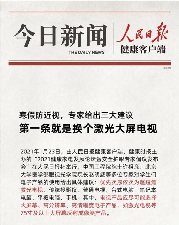 相信在未来,激光电视会走进更多家庭的客厅,成为他们的观影首选。最重要的是,它彻底改变了人们观影的体验和要求,让使用者充分感受到了科技进步的力量。