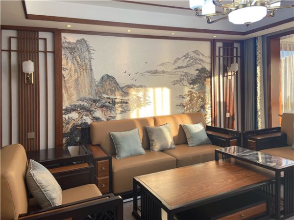 很多人都喜欢中式的家居风格,给人大气沉稳的感觉,中式风格的最大特点就是文化,根据装饰所表现出来的传统古韵流淌着悠久而又浓厚的历史。此套实景案例是由山西大同专卖店提供,整屋用了四款刺绣墙画做背景:《志存高远》、《蓬莱清韵》 、《庭风盈叶》以及《鸿蒙境》,上墙效果震撼,每一幅都能完美适配于每个空间,一起来感受匠心品味下的东方雅韵!