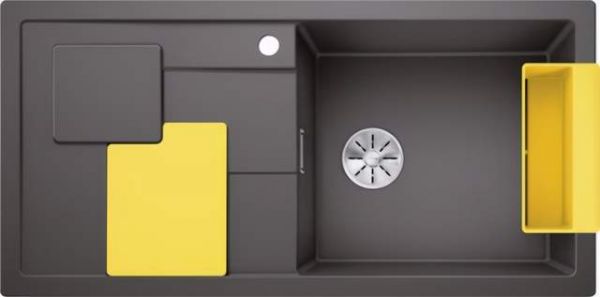 以明亮清新的柠檬黄色为配件,与SILGRANIT灰色水槽和谐匹配,可应对多种需求,给人以坚实可靠又积极乐观的视觉感,安心可靠的切菜板,实用便利的置物盒,一如温暖的阳光穿过阴影,在厨房一隅打造的惬意心情。在线条流畅的灰色台面自由摆放,让生活的节奏以各种精彩的形式跃入眼帘。