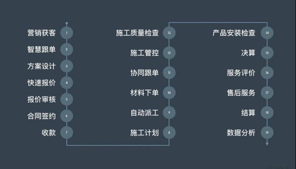 从业主角度来看,如何快速找到施工质量较好、服务优质的装修公司以及价格实惠的家装产品是业主的主要需求。对于装修公司来说,如何实现低成本获客与采购,高效的客源转化以及良好的施工交付是装企亟需解决的问题,但目前大多数装企并没有特别有效的解决方案。没有核心竞争力,管理效率低下,各项成本高,入不敷出是这些公司在经营上主要存在的问题。这些问题的出口,必定会转嫁到装修业主身上,例如工程延期、装修过程不透明等现象引发业主不满,家装公司只能勉强维持“一锤子买卖”,苟延残喘直至走向末路。“将信息化的科技力量引入对人高度依赖的传统家装行业”是提升企业效率,改变家装公司当前经营状况的突破点。