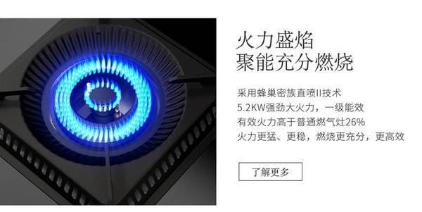 不得不说它的5.2kW大火力,火候是中式烹饪的灵魂,小火煎炸药均匀稳定,大火爆炒须猛烈强劲,才能让菜肴口感风味达到最佳。其次采用独创的蜂巢直喷II技术,赋能锅底热量更均匀,5.2kW强劲大火力,有效火力远远高于普通燃气灶,一级高能效,使火力更猛、更稳,燃烧更充分,更高效,实现让煎炸更细致,爆炒更给力。