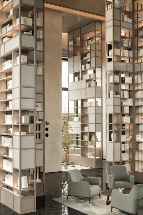 生活美学馆:云端之上,是书香院处,云端之下,是生活与艺术糅合的集展示、洽谈、办公、活动等为一体的多功能场景,传递品牌对理想中的明日生活图景的焕新态度。