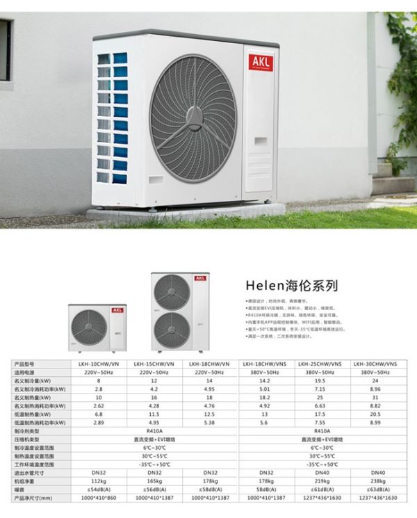 70 年来,AKL乐卡坚持可持续发展,追求人与自然和谐共存,以清洁能源,可再生能源为主导,替住宅,商业建筑提供了大量的舒适系统解决方案,积累了大量经验。其所研发制造的中央空调地暖一体机,是专为中高端家庭中央空调、地暖系统一体化设计,产品 Erp 季节能效等级达 A++和 A+++(欧洲最高能效等级)标准、中国一级能效标准。丰富的产品系列, 涵盖家用及商用领域.