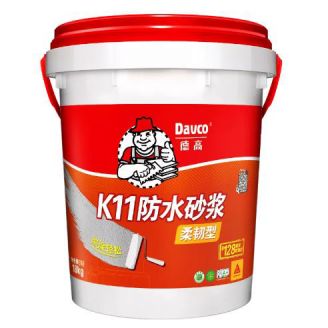 由于地面有很多转角和高低坎,地形复杂,还可能存在一些细小的孔洞和裂缝,使用柔性防水能够更好地覆盖防水死角。K11柔性防水浆料,优异的抗拉伸性能,可以覆盖基层上的细微裂纹。