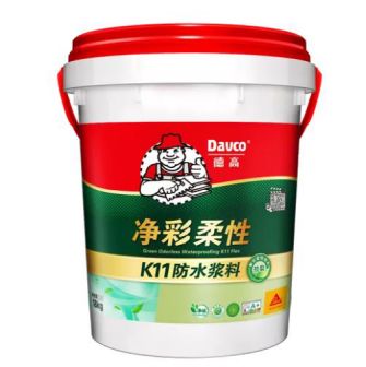 K11净彩通用防水浆料,材料分子粒径小,能够很好的渗透到混凝土、抹灰层孔隙内部产生固化反应,有效的堵塞原有的孔隙和毛细管,从而达到良好的防水抗渗效果。