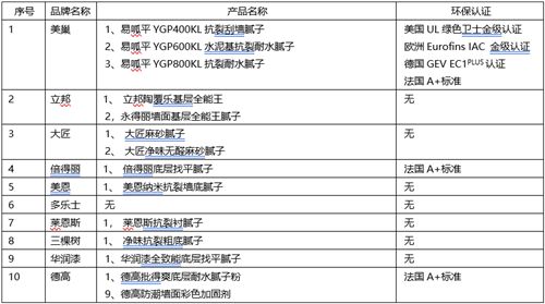 从不同类型腻子的对比情况来看,不同品牌的产品细分程度不同,不少品牌在不同品类中均推出了相应功能的产品,美巢产品涵盖了腻子粉的四大品类,种类齐全。没有通过目前国际公认的四大环保认证居多,只有美巢全品系产品通过国际四大环保认证最高级。