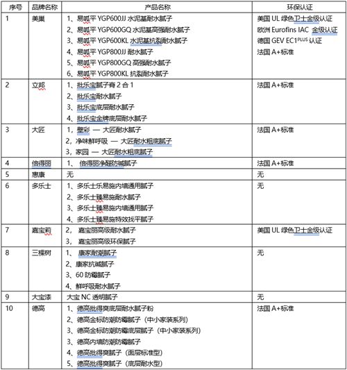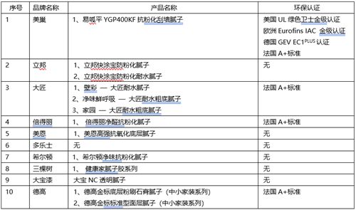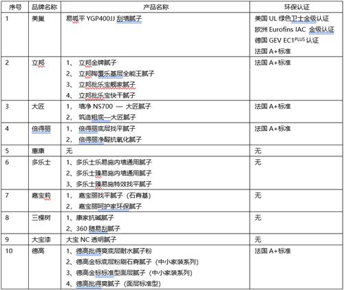 为了解决上述烦恼,为了让选腻子、买腻子变得更容易,今天我们按照室内建筑腻子产品必须达到《建筑室内用腻子》(JG/T298-2010)这一标准,参考内墙腻子粉的功能性和环保认证情况,对如今市场占有率较高的美巢等大品牌的腻子粉产品进行整理。希望能够给更多的人带去帮助。