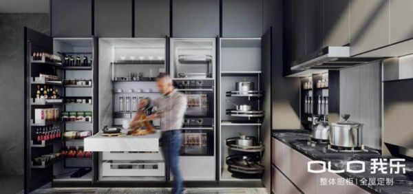 而我乐橱柜,在“智慧厨房”中加入了具有原创专利的中柜系统,正好就解决了困扰大家的收纳难题。