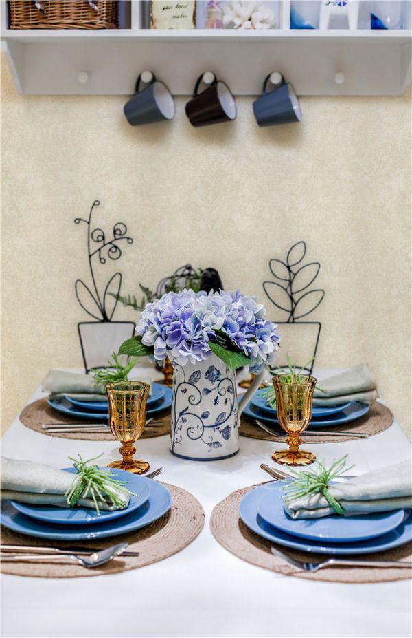 本案为简约田园风格,室内的空间布局一气呵成,氛围和谐统一,米黄色系的墙布,白色的门套,碎花布艺的田园家具,使空间看起来素雅、端庄、舒适、大方,给人以简洁、明亮的通透感,自然而温馨。设计师意图为现代人们传达出居室静谧、深邃的气质,使其坐享于此,一本书、一杯咖啡就拥有胜过千言万语的释然。