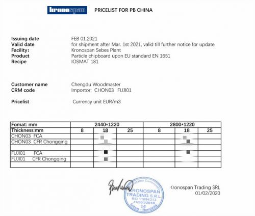 原料成本暴涨,克诺斯邦板材宣布再次调价