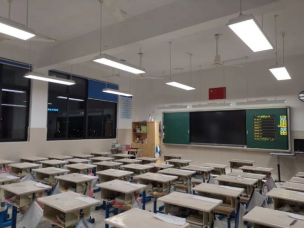 雷士照明教室灯盘使用满天星布灯珠,高雾度PC面板,大遮光角、强防眩,出光柔和、中性色温,保持眼锥状细胞的敏感度;应用滑轨式接口、高效安装,快速维护,不影响正常教学。