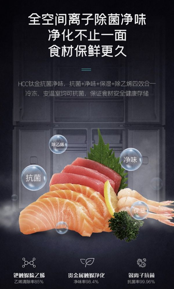 针对用户普遍关心的饮食安全问题,海信真空休眠冰箱512也给出了解决方案,突破传统冰箱除味除菌技术,采用全空间离子除菌净味,利用SPA+离子主动除菌,开门即可感应除菌。以冰箱内不同空间和以及储藏食物的特点为切入,智能定制冷藏、冷冻以及变温室除菌净化专属方案,按区域精准净化,实现除菌、保湿、净味、除乙烯四效合一,不仅规避了食物本身携带的细菌,也能效抑制冰箱内食物交叉串味,只留新鲜清新。