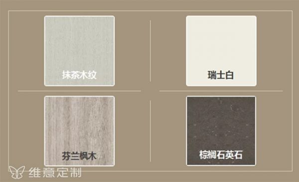 采用时尚的瑞士白搭配抹茶木纹,视觉营造简约素雅,纯粹自然之感。加上局部选用暖色木质材料衬托,简约中又不失温馨。这种治愈色系搭配,真的是闲暇时光的标配。