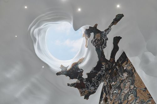 事实证明,美克美家总是在人们的期待以上。老东家冯东明化身总设计师,亲自操刀洞学馆的空间设计。“洞学”在中国唐代,指设在名山胜地的书院。美克洞学館以洞穴作为意象载体,空间设计受西域白雅丹地貌及龟兹风格的丝路文脉启迪,采用了后现代混搭、叠加的手法,把古典构建以抽象的形式组合在一起,营造出圣洁、时尚和充满艺术底蕴的“穴居”文明。