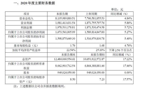 2 月23 日晚间,老板电器发布了2020 年度业绩快报。据快报显示,公司2020 年实现营收81.36 亿元,同比增长4.84%;实现归母净利润16.74 亿元,同比增长5.27%;实现扣非归母净利润15.99 亿元,同比增长5.40%。在行业普遍下滑的背景下仍然实现了稳健增长。
