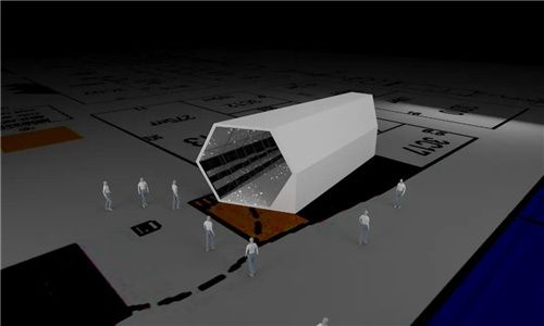 在具体的创意设计中,二位则利用简单的镜面材料加上LED屏幕来制造通道内的未来感,同时加上LED变色灯具和投影机,以此表达对未知的向往和探索精神。同时,展区利用智能调光灯具和感应系统,让通道内的光影、屏幕色彩和投影的内容跟随进入者声音的变化而变化,极具意趣。