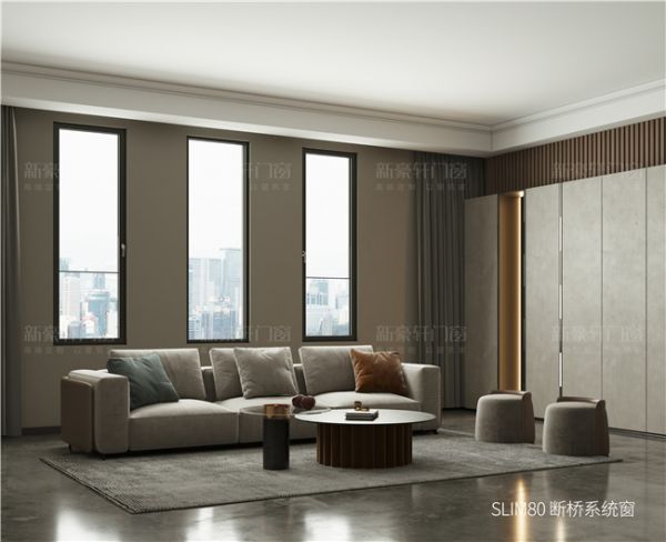 功能上,Slim产品特有的嵌入式框包扇结构,使得密封更强,防水性能更优越;内外框扇平齐设计,在满足极窄审美的同时,达到了与实用性的完美平衡,体现出极致优雅的生活品味和审美追求。今年,新豪轩更在Slim80断桥系统窗创新升级隐藏排水系统,防风啸性能得到了进一步加强。