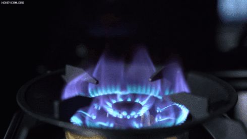 我们将视线转到灶具部分。打开灶具旋钮,火焰瞬间升腾,并充分燃烧。在实际演示中,我们看到火焰呈淡蓝色;