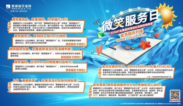 3·15期间,蒙娜丽莎瓷砖重磅推出“微笑服务日”