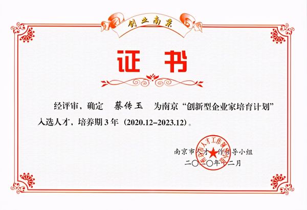 智库智能总裁蔡传玉成功入选南京市“创新型企业家培育计划”