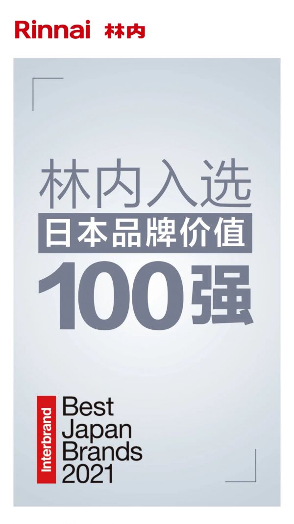 2021年2月25日,Interbrand Japan宣布了2021年日本最具品牌价值100强,这是使用其独特的品牌价值评估方法来转换日本品牌价值,此次评估中,林内入选品牌价值前100强。