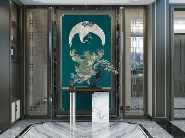 鹤是古代人民最崇高鸟类中的一种,又称“一品鸟”它象征着圣洁,清雅,长寿,给人们留下的影响很大。“水天闻唳鹤”鹤立潮头的吉祥图案,名叫“一品当朝”,其吉祥意义是仕途显赫高升。这款产品寓意吉祥适合铺贴在客厅玄关、座椅背后墙面。