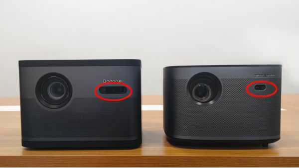 外观上这两款投影都属于深色系的主色调,机身都采用了蜂窝孔洞的散热设计。在主镜头的右侧,两款投影都设置了TOF+CMOS模组,但当贝F3采用的是双TOF+CMOS模组,所以模组的长度远远超过极米H3。