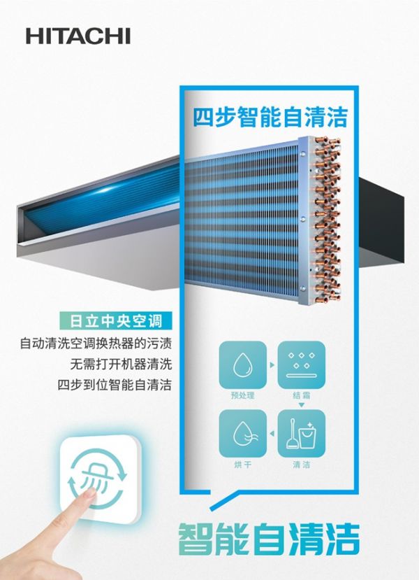 不仅如此,日立家用净化中央空调还能有效去除空气中的病毒、PM2.5、异味、甲醛等室内污染物,就连长期使用后空调内部会产生大量灰尘细菌导致过敏这个问题也早早做好了应对。“会自己洗澡”的日立家用净化中央空调有自清洁功能,通过预处理-结霜-清洁-烘干四步,就能自动清洁空调换热器上的污渍,从源头带来清洁好空气。