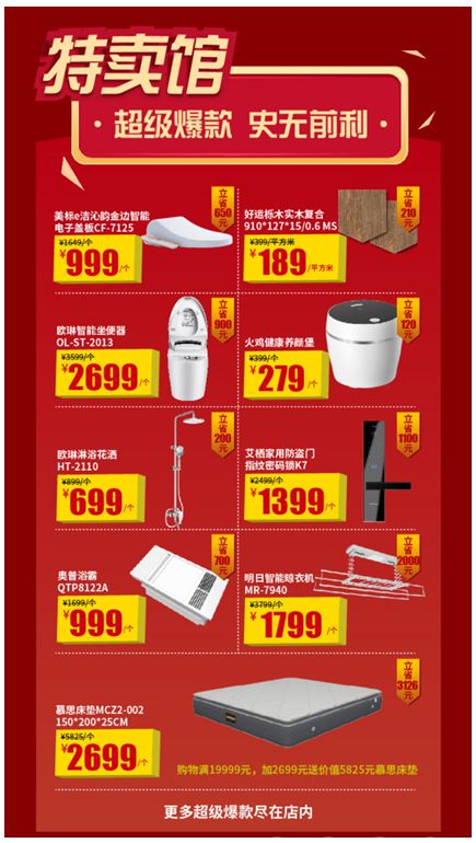 同时,百安居还携手百大家装品牌共同发起优惠折扣叠加的活动。消费者在选购时,不仅可以享受产品的特惠价格,还可以叠加享受“满额立减”的优惠福利。
