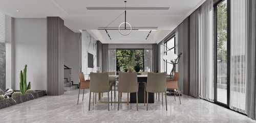在格局规划上避免了小块区域的划分,尽量以开放的形式融入公共区域,凸显优越的空间感,同时,以中西厨、双主卧等形式满足功能需求。设计手法上大量运用体块、穿插、线条等元素,打破空间的局限,让空间更有活力、延展性。