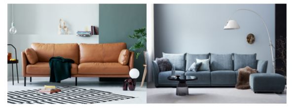 样子生活爵士真皮沙发(左)、样子生活轻奢布艺沙发(右)