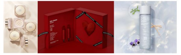 玛丽黛佳900目精华粉底霜(左)、玛丽黛佳以红之名限定骑士红管礼盒(中)、玛丽黛佳定妆喷雾(右)
