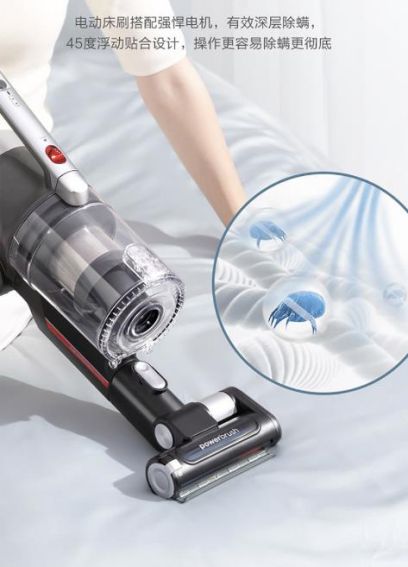美的吸尘器搭配电动床刷,可以用于沙发、床垫等织物表面的清洁,独有的除螨刷头, 能够很好的吸除织物内部的尘螨和尘螨排泄物。而且45°角的倾斜度,正好与床铺完美贴合,可以把床、沙发等布面上的头发、尘螨、食物碎屑等污染物都吸入尘杯中,尘杯里含有抗菌锥体,能够长效抑制尘杯内部细菌滋生,有效避免二次污染,更好的守护家人健康。