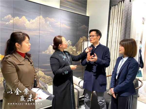 舍然艺术设计创始人武云霞老师莅临伊伊布舍墙布墙画体验馆,与伊伊布舍总经理张建林先生一起为线上伙伴讲解全案化4.0模式的设计理念,与线上伊粉们共赏软装视觉盛宴,体会全案魅力。