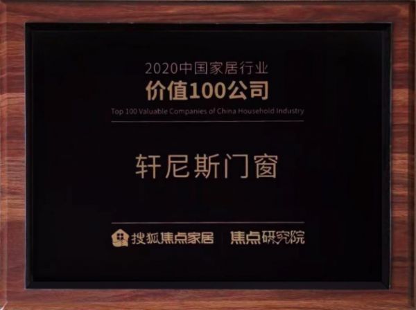 本次2020中国家居行业价值100公司榜单评选活动,由搜狐发起,搜狐焦点家居、搜狐研究院共同主办的,面向在中国市场经营的所有泛家居企业开放,由媒体、平台、协会、商会等多方共同组成的专家评审团,以市场、创新、经营、社会贡献等大维度评估企业的行业及社会价值。轩尼斯门窗荣登榜单,代表了公司市场发展状况、技术创新水平、社会贡献能力等的出色实力得到了行业与市场的充分认可。